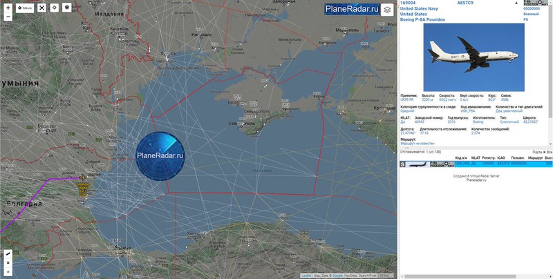 Cụ thể, vào lúc 11h05 theo giờ Moscow, máy bay tuần tra chống ngầm P-8A Poseidon có đuôi số 169004 cất cánh từ căn cứ không quân Sigonella trên đảo Sicily và lúc 12h35 đã quân đội Nga được phát hiện ở Biển Đen. Chiếc máy bay này bay trong vài giờ tại biên giới của bán đảo Crimea và hoàn thành trinh sát vào lúc 16h00 giờ Moscow cùng ngày.