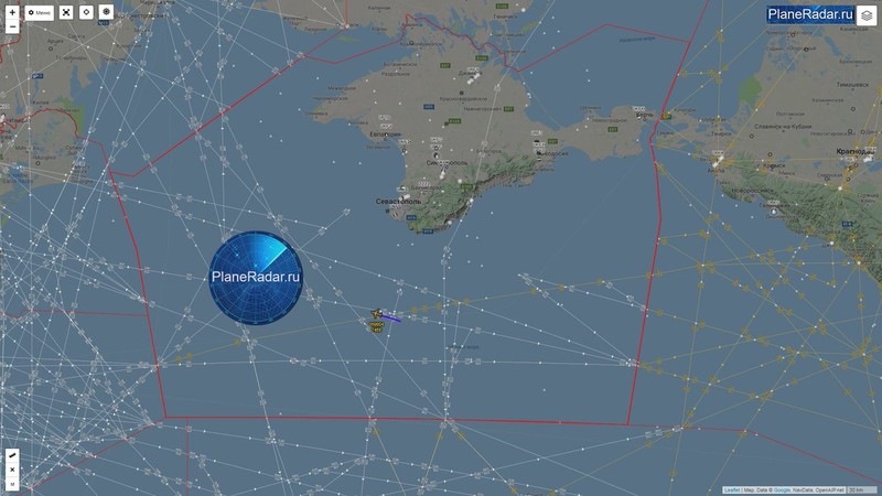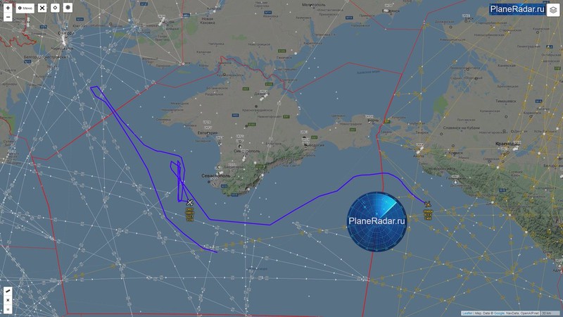 Chiếc máy bay này đã bay quanh biên giới phía đông nam bán đảo Crimea hai lần, sau đó di chuyển đến biên giới phía tây nam. Máy bay tiến sát bờ biển ở độ cao 32 km.