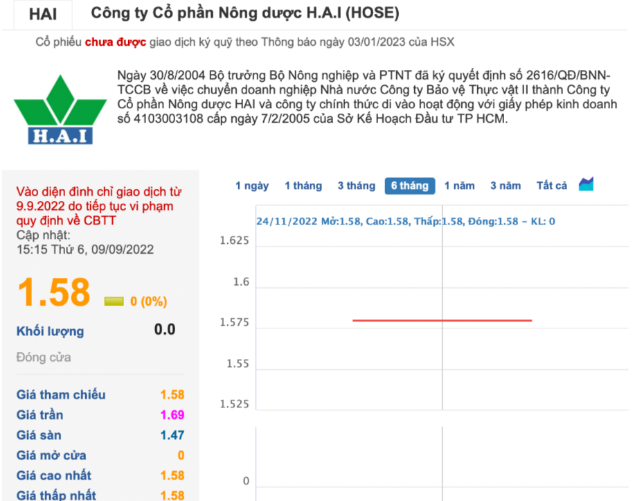 Trước đó, HOSE công bố quyết định về việc chuyển cổ phiếu HAI từ diện hạn chế giao dịch sang diện đình chỉ giao dịch kể từ ngày 9/9/2022.