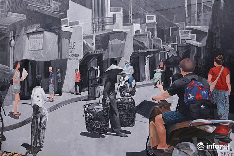 Những bức ảnh Hà Nội xưa được bồi lên các ô đá, giúp quang cảnh đường phố Hà Nội hiện lên một cách chân thực như những bức vẽ 3D, nổi khối. |