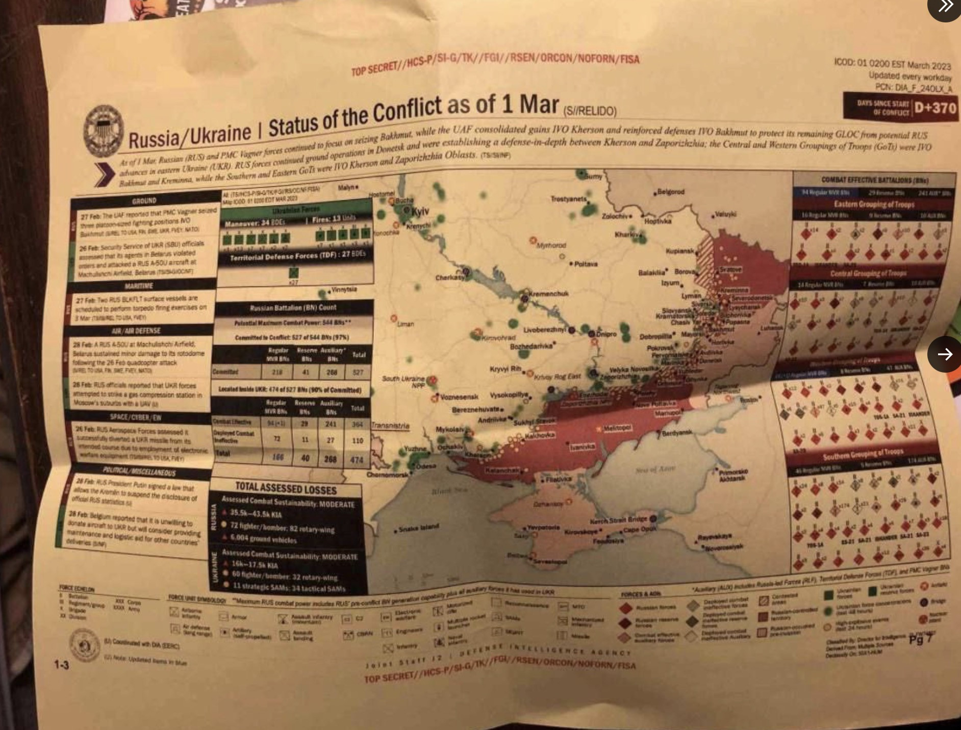 Số tài liệu mật mới bị rò rỉ được tìm thấy trên Twitter và các trang mạng xã hội khác vào chiều qua (7/4). Tương tự những báo cáo tối mật bị tiết lộ một ngày trước, một số tài liệu mới đề cập chi tiết tới thông tin tình báo liên quan đến cuộc xung đột ở Ukraine. Nó cho thấy cả đánh giá của Mỹ về tình hình ở Bakhmut, nơi đã diễn ra giao tranh ác liệt suốt nhiều tháng.