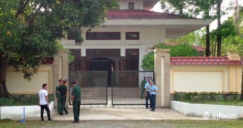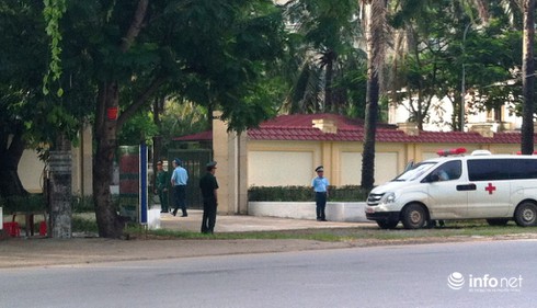 An ninh được thắt chặt phía bên ngoài Nhà tang lễ Bệnh viện Quân y 4. |