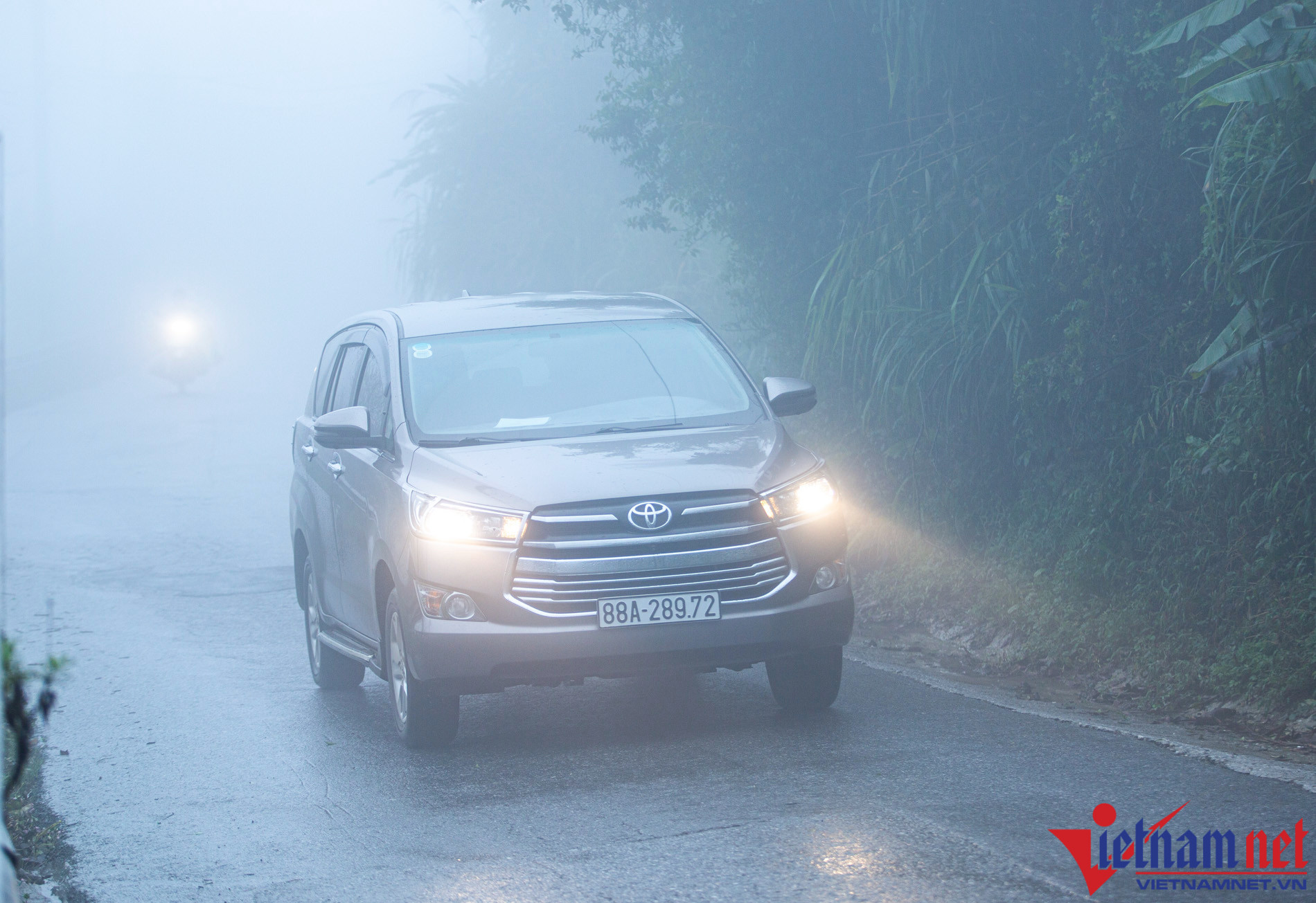 Theo ghi nhận của PV VietNamNet, trưa 7/2, sương mù dày đặc bao phủ toàn bộ thị trấn Tam Đảo (huyện Tam Đảo, Vĩnh Phúc) khiến nhiều người điều khiển phương tiện phải bật đèn, chạy chậm vì tầm nhìn bị hạn chế.