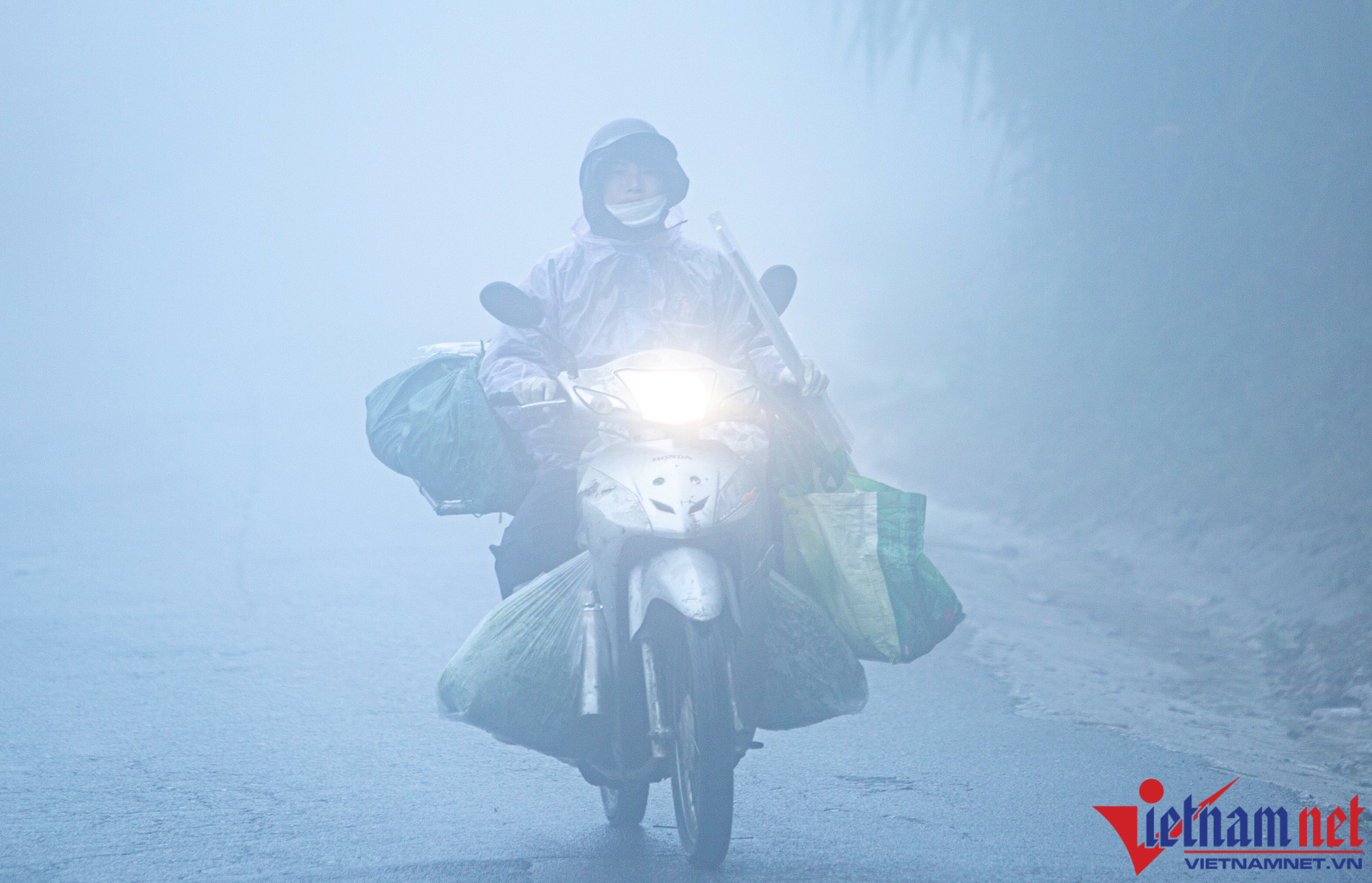 Chị Nguyễn Thị Hải (thị trấn Tam Đảo) thường xuyên mang rau đi bán cho khách du lịch, nhưng hôm nay trời mù đến giữa trưa, tầm nhìn thấp, nên đi được nửa đường chị phải quay lại vì sợ nguy hiểm.