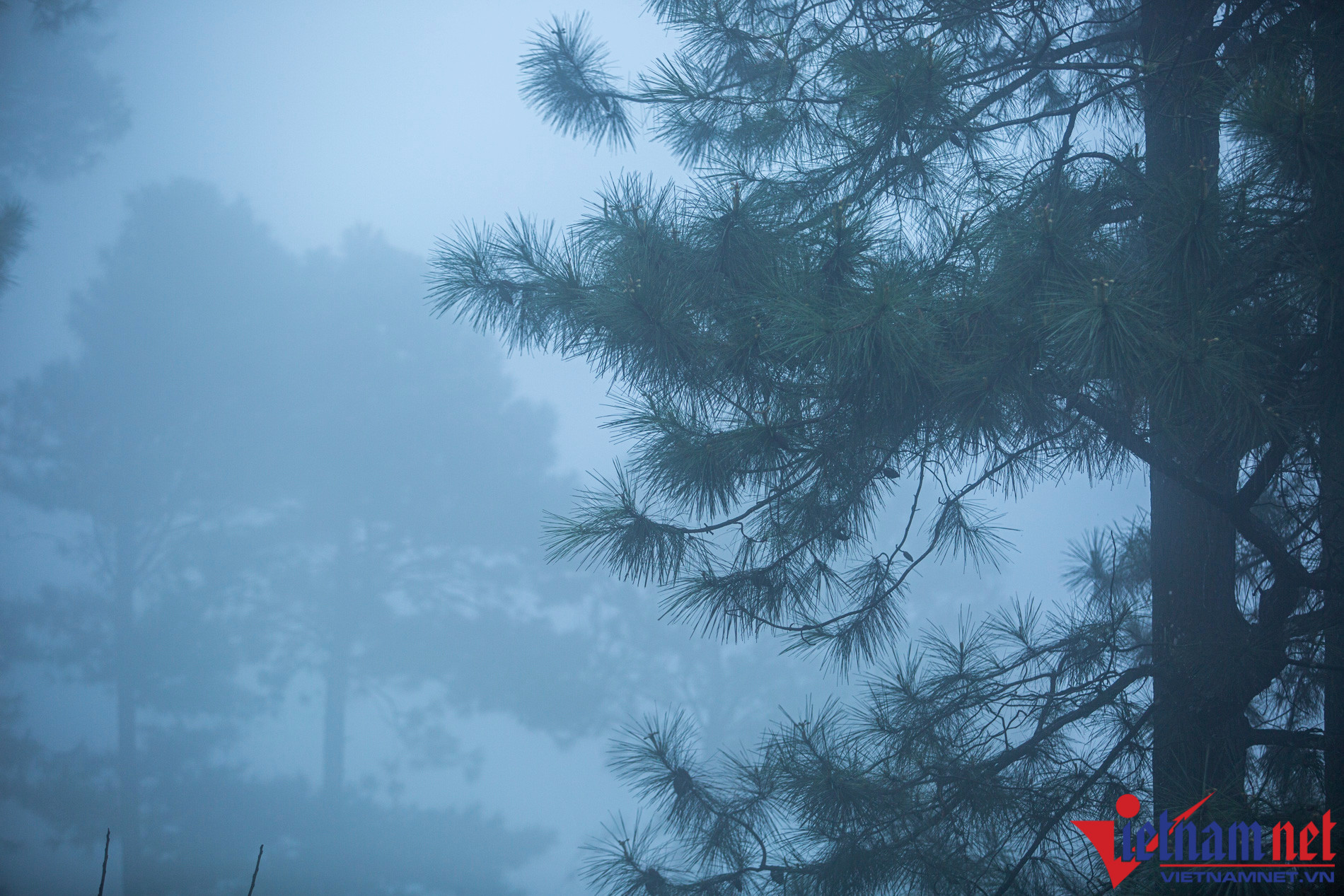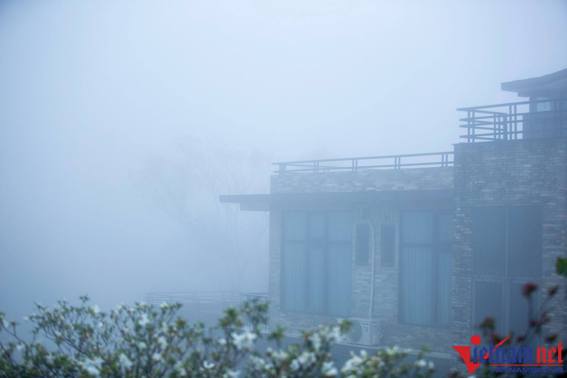 Thị trấn Tam Đảo mờ ảo trong màn sương mù dày đặc giữa trưa