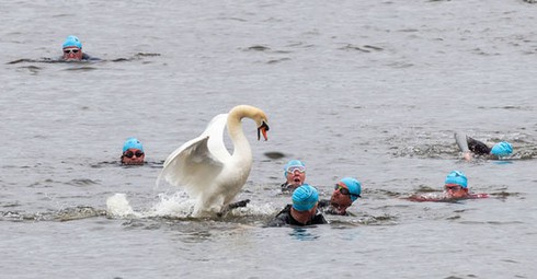 Thiên nga hung dữ tấn công thí sinh bơi lội