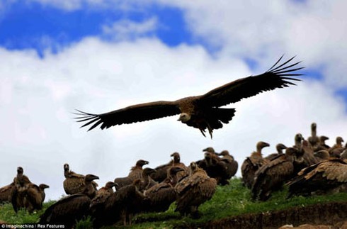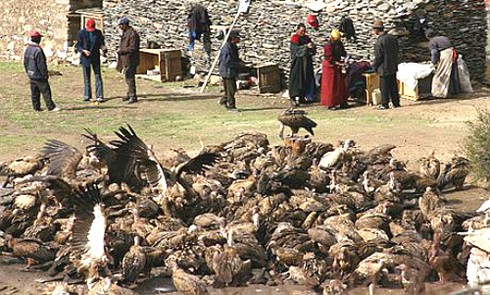 Thiên táng (điểu táng) là hình thức mai táng nổi tiếng "rùng rợn" của người Tây Tạng. Thay vì chôn cất người chết trong lòng đất, người Tây Tạng đưa thi thể lên núi làm mồi cho đàn kền kền đói.