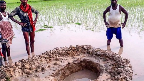 Nông dân Ấn Độ bị sốc khi vật thể 'giống như quả cầu lửa' đâm xuống ruộng lúa. |