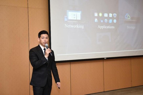 Ông Mike Chen – Giám đốc Marketing của Synology giới thiệu các đặc điểm vượt trội mà sản phẩm NAS mang đến cho khách hàng. |