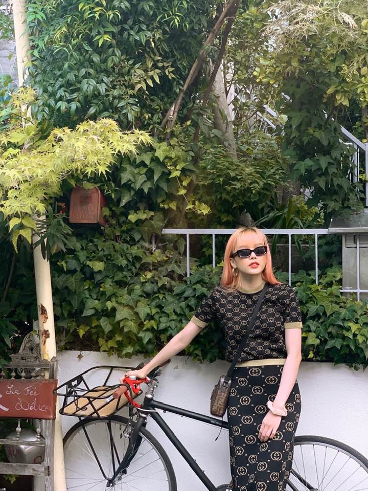 Hình ảnh Thiều Bảo Trâm từng mặc cây đồ hiệu chưa được cắt sửa.