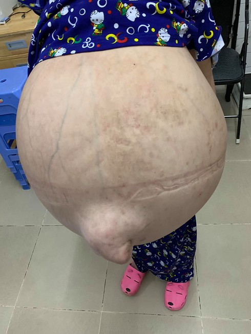 “Rút giải áp mỗi ngày 2-3 lít dịch, sau 1 tuần sẽ tiến hành mổ và mỗi lần mổ chúng tôi chỉ dám lấy 1/4 khối lượng dịch và bướu trong ổ bụng. Sau vài lần mổ khi đánh giá an toàn chúng tôi sẽ mổ lớn và lần này mới biết bệnh lý gì sau khi quan sát toàn bộ ở bụng”.