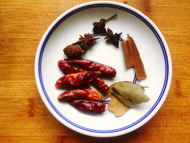 Các loại gia vị như quế, hoa hồi, thảo quả, ớt khô có nhiều bụi nên rửa sạch rồi dùng khăn giấy thấm khô.