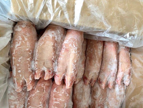 Các sản phẩm thịt lợn nhập khẩu được rao bán phổ biến là móng lợn, sườn cánh buồm, ba chỉ, sụn. Thậm chí cả mỡ lợn, thịt vụn cũng được nhập khẩu về bán tại Việt Nam. |