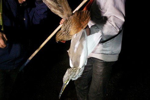 Những con chim xấu số khi bị bắt, thậm chí bị “thợ săn” đập đầu cho đến chết hoặc làm yếu đi cho vào bao tải. Chim chủ yếu gồm 2 loại: Cò trắng và bìm bịp.