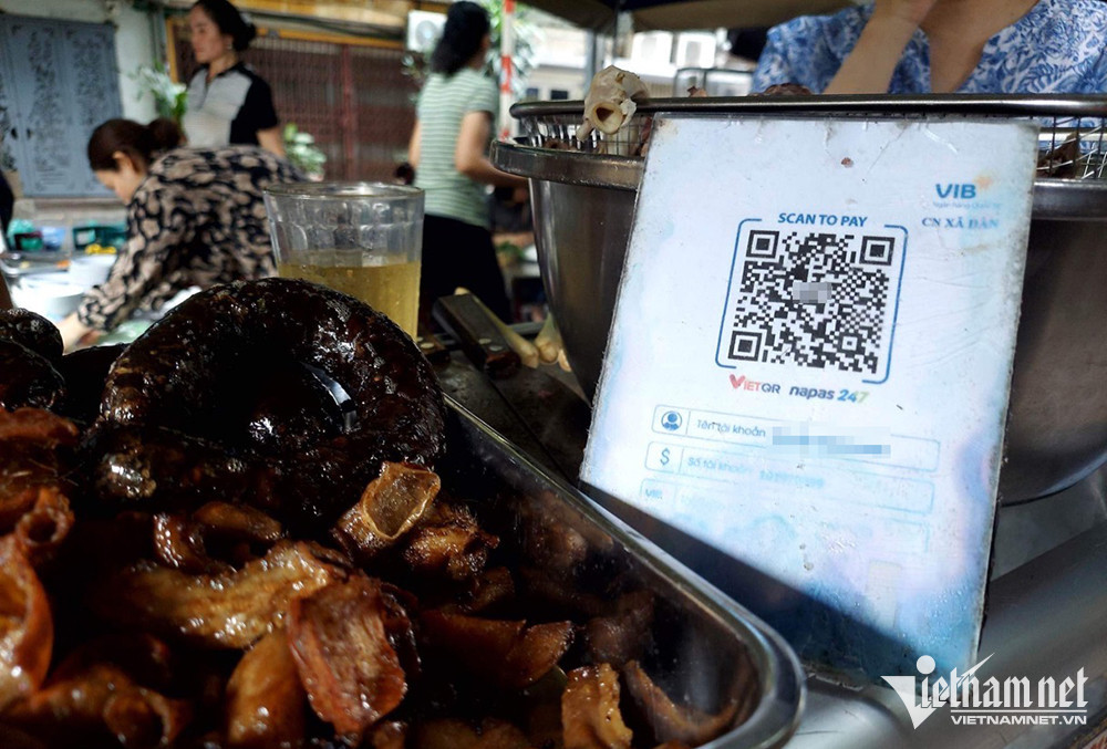 Sau dịch cuộc sống trở lại “bình thường mới”, ra chợ mua đồ ăn thức uống, phần lớn hàng quán đều dán QR code ngay trên quầy hàng để khách tiện quét mã thanh toán, một số hàng khác áp dụng chuyển khoản.