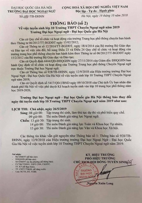 Năm nay trường THPT chuyên ngữ công bố lịch thi từ rất sớm |