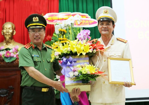Thượng tướng Nguyễn Văn Thành (trái ảnh) trao quyết định choĐại tá Lê Nam Hồng (phải ảnh) |