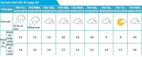 Dự báo thời tiết Hà Nội 10 ngày tới (31/1 tới 8/2):
