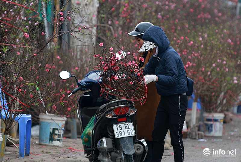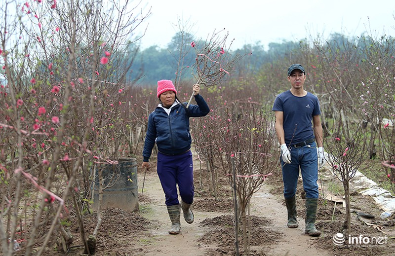Do đào nở sớm nên người trồng đào tranh thủ bán sớm để người dân Thủ đô được chơi đào trước Tết. |