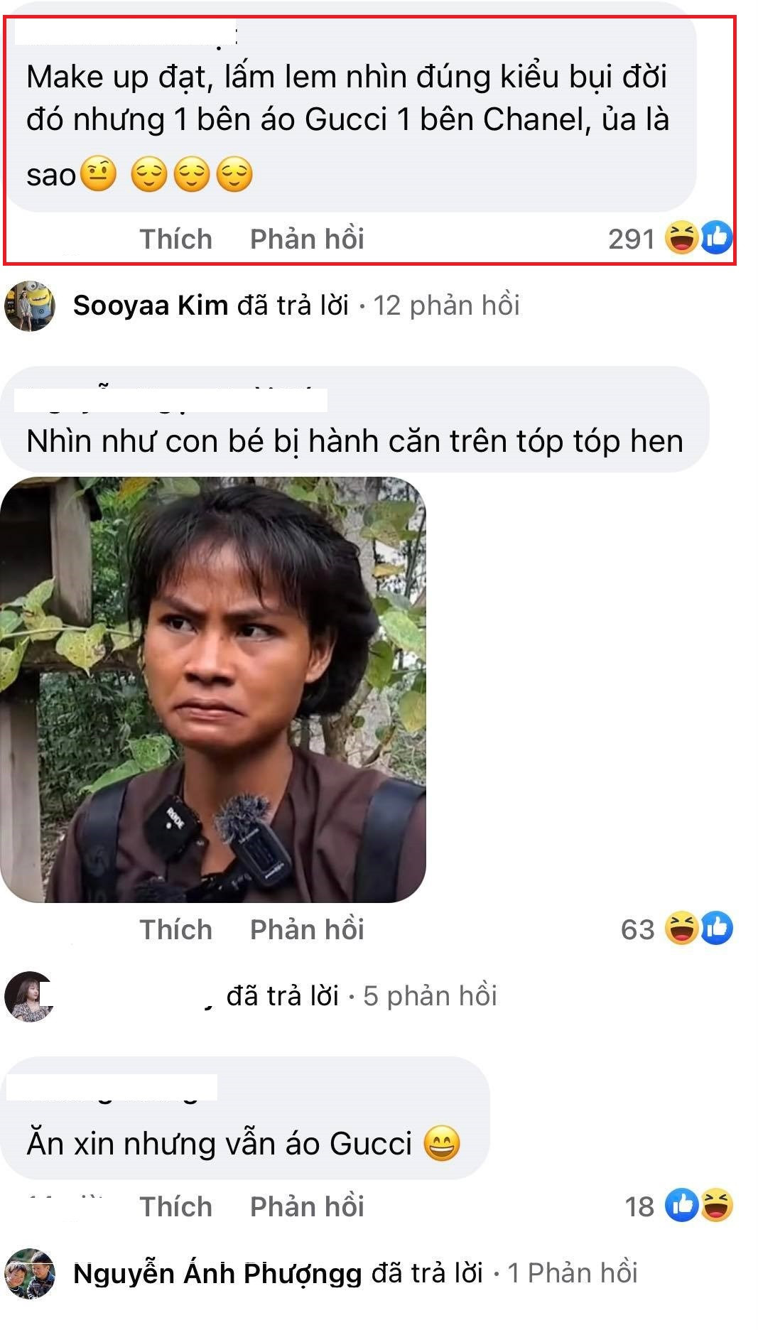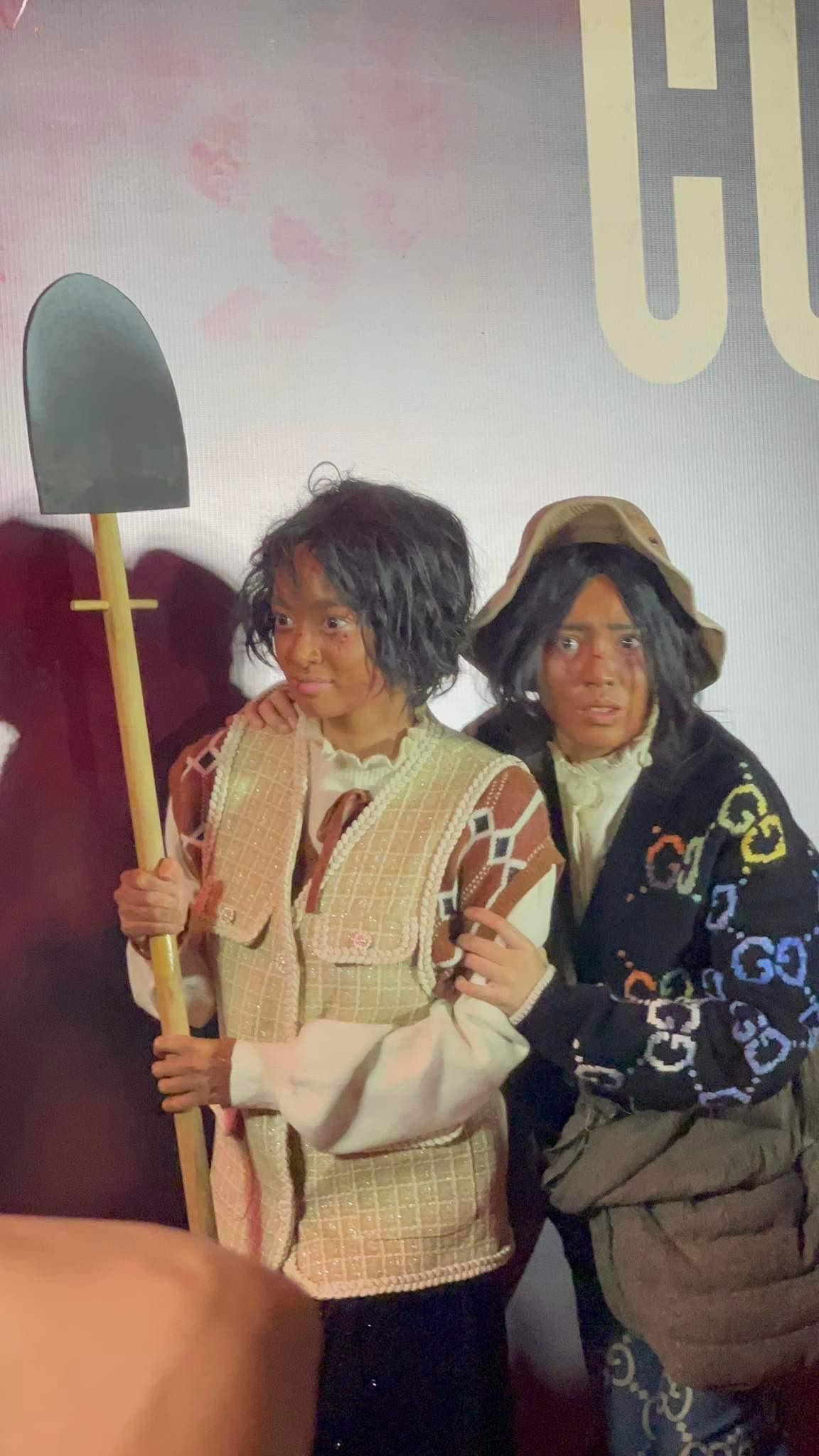 Hài hước hơn khi cộng đồng mạng nhanh chóng nhận ra điểm bất thường trong tạo hình của 2 cô nàng, nhìn thì rất “cái bang” nhưng thời trang lại toàn hàng hiệu. Lan Ngọc thì diện nguyên bộ Gucci, Kaity Nguyễn cũng không kém cạnh với Chanel đắt đỏ.