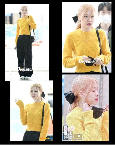 Lâu lắm rồi cư dân mạng mới thấy Rosé chọn trang phục tươi tắn để diện ở sân bay. Hôm nay, Đại sứ Saint Laurent chọn áo cardigan màu vàng để tạo nên vẻ ngoài vô cùng năng động và nổi bật. Ngoài ra, phụ kiện nơ cài tóc cũng tăng thêm vẻ đáng yêu cho trang phục của giọng ca chính Blackpink.