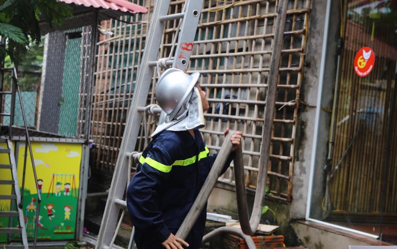 Sau 10 phút nhận được tin báo, 6 xe cứu hỏa cùng lực lượng chức năng đã có mặt tại hiện trường để dập tắt đám cháy.