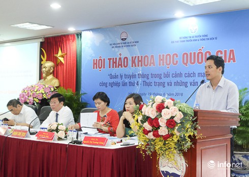 Hội thảo khoa học quốc gia “Quản lý truyền thông trong bối cảnh cách mạng công nghiệp lần thứ tư – Thực trạng và những vấn đề đặt ra” do Cục Phát thanh – Truyền hình và Thông tin điện tử (PTTH & TTĐT) - Bộ TT&TT phối hợp với Học viện Báo chí và Tuyên truyền tổ chức vừa diễn ra sáng 19/6 tại Hà Nội.
