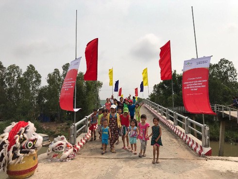 Niềm vui các em nhỏ trên cây cầu mới trong ngày Lễ khánh thành |