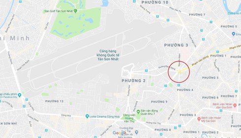 Vị trí cầu vượt (vòng tròn đỏ) tương ứng với sân bay Tân Sơn Nhất. |