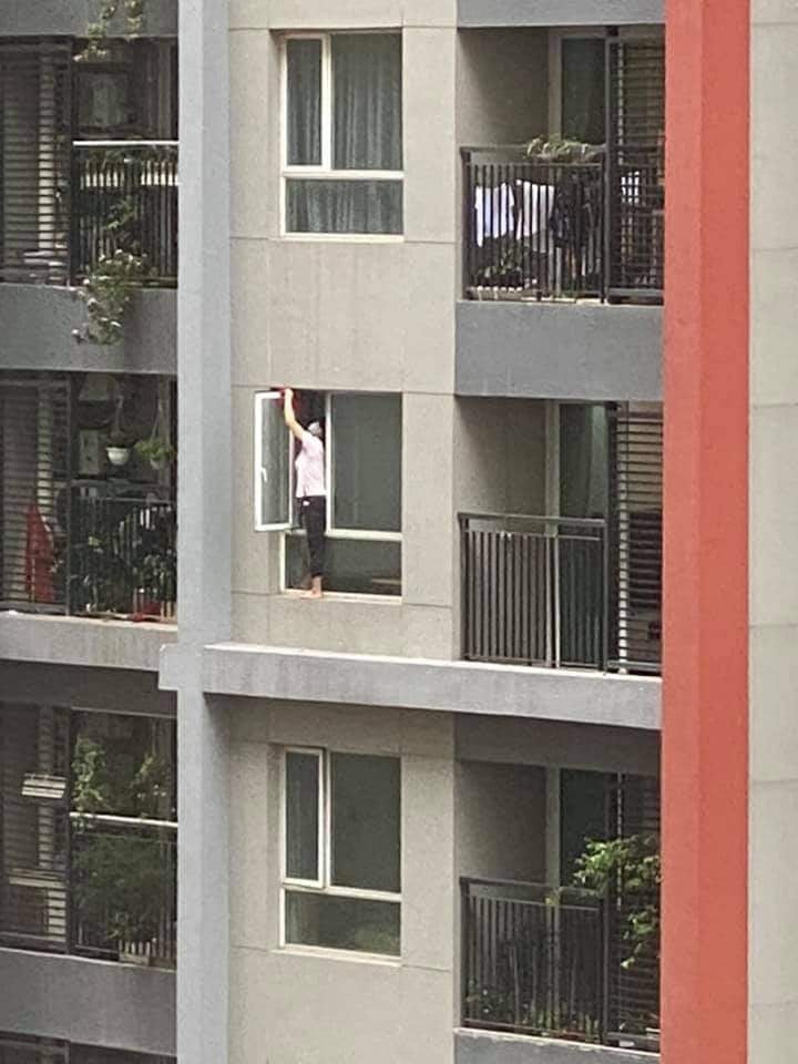 "Em nhìn thấy mà run cả người" - đó là lời chia sẻ của một thành viên đăng tải bài viết dưới đây lên mạng xã hội. Khi mở cửa sổ ra, người này đã không khỏi hoảng hốt khi thấy hình ảnh nữ giúp việc ở nhà đối diện đang thoăn thoắt lau kính.