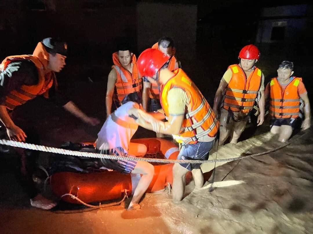 Tại một số tuyến đường khác, lực lượng chức năng, người đi đường đồng lòng tham gia cứu hộ, không những dùng thuyền, xuồng để di chuyển mà còn phải sử dụng dây để đưa bà con về nơi an toàn.