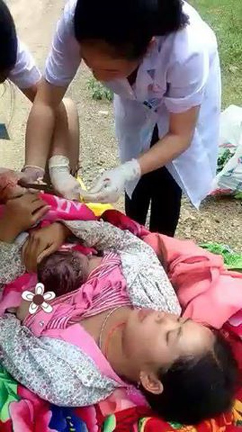 Chị Lại Thị Thanh Tâm - nữ hộ sinh của bệnh viện cho biết khi xe cấp cứu đến thấy bệnh nhân. Lúc đầu, mọi người định chuyển sản phụ về Bệnh viện nhưng khi kéo băng ca của xe cấp cứu xuống và thăm khám cho sản phụ thấy tình hình rất nguy kịch.