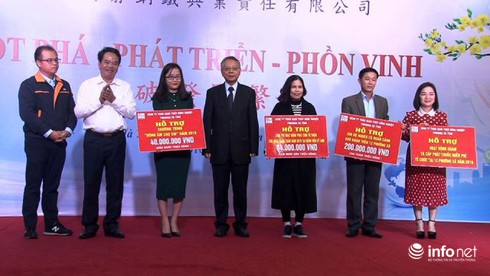 Tiếp nối các hoạt động đầy ý nghĩa đó, tại chương trình gặp mặt cuối năm 2018 và chào Xuân 2019 hôm nay, Công ty Formosa Hà Tĩnh tiếp tục quyên tặng xe ô tô công vụ 7 chỗ cho Quỹ vì trẻ em khuyết tật Việt Nam trị giá 713 triệu đồng; quyên tặng 40 chiếc xe đạp cho trẻ em có hoàn cảnh khó khăn trên địa bàn thị xã Kỳ Anh với tổng giá trị 60 triệu đồng; hỗ trợ phong trào “Tết vì người nghèo và nạn nhân chất độc da cam dioxin” do UBMTTQ tỉnh Hà Tĩnh phát động 500 triệu đồng; hỗ trợ 265 triệu để sửa chữa mái nhà cho Làng trẻ SOS Hà Tĩnh; 40 triệu đồng hỗ trợ chương trình “Đông ấm cho em” năm 2019; 360 triệu đồng hỗ trợ hoạt động khám và cấp thuốc miễn phí tổ chức tại 12 phường, xã năm 2019; 84 triệu đồng hỗ trợ kinh phí hoạt động phát cơm từ thiện chủ nhật hàng tuần cho bệnh nhân tại bệnh viện thị xã Kỳ Anh, tặng 200 phần quà tổng giá trị 100 triệu cho các hộ có hoàn cảnh khó khăn tại 12 phường xã thuộc địa bàn thị xã Kỳ Anh.