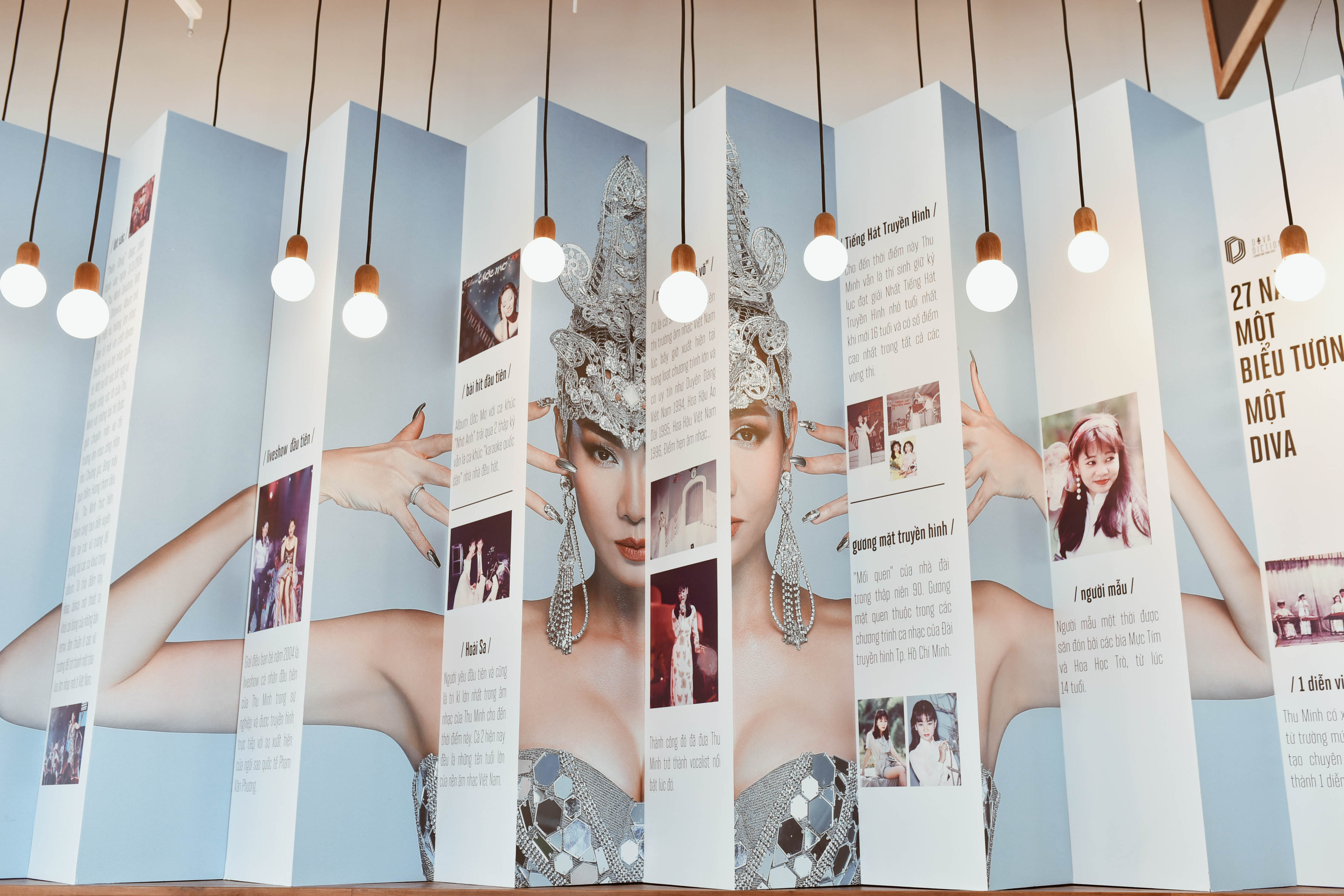 Mở đầu không gian triển lãm là hàng loạt khoảnh khắc dấu ấn trong cuộc đời ca hát của nữ nghệ sĩ, từ giải Nhất Tiếng hát truyền hình 1993, những năm đầu gắn bó với dòng nhạc truyền thống - cách mạng, sự chuyển mình sang thể loại dance và trở thành diva đương đại của Việt Nam.