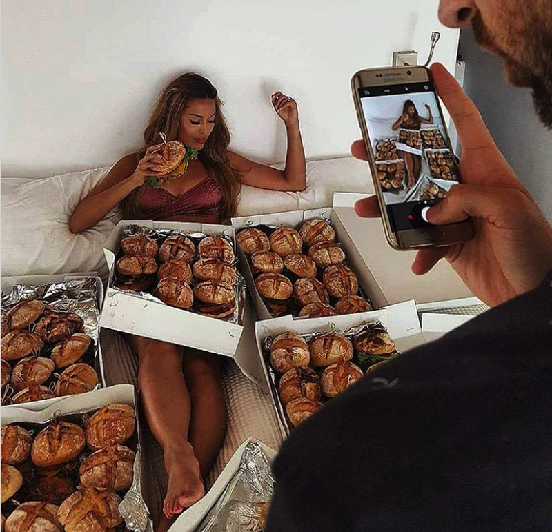 'Được rồi, anh sẽ chụp cho em bức hình với 75 chiếc burger xung quanh'. |