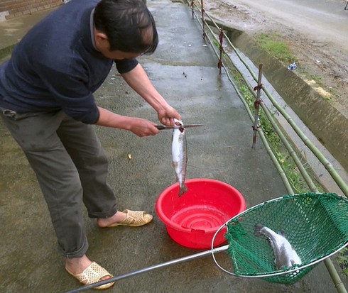| Một số hộ đã bắt cá bán lẻ, nhưng giá cũng rất thấp. |