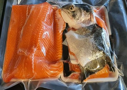 | Nhiều hộ đã đóng gói cá hồi hút chân không, cá hồi hun khói… để bán trên mạng xã hội. |
