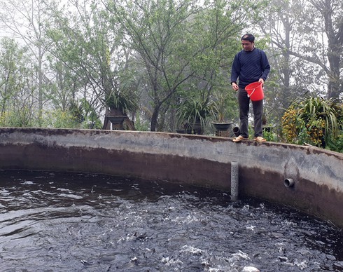 | Ông Mình hiện đang bỏ không một số ao nuôi cá nước lạnh. |