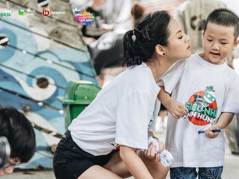 Thu Quỳnh cùng con trai tham gia một hoạt động ngoại khóa (Ảnh: Kenh14) |