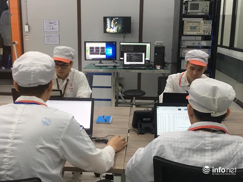 Vingroup là tập đoàn BĐS hiếm hoi có sự dịch chuyển và đầu tư bài bản cho khoa học và công nghệ. Ảnh: Bên trong nhà máy sản xuất điện thoại Vinsmart. |