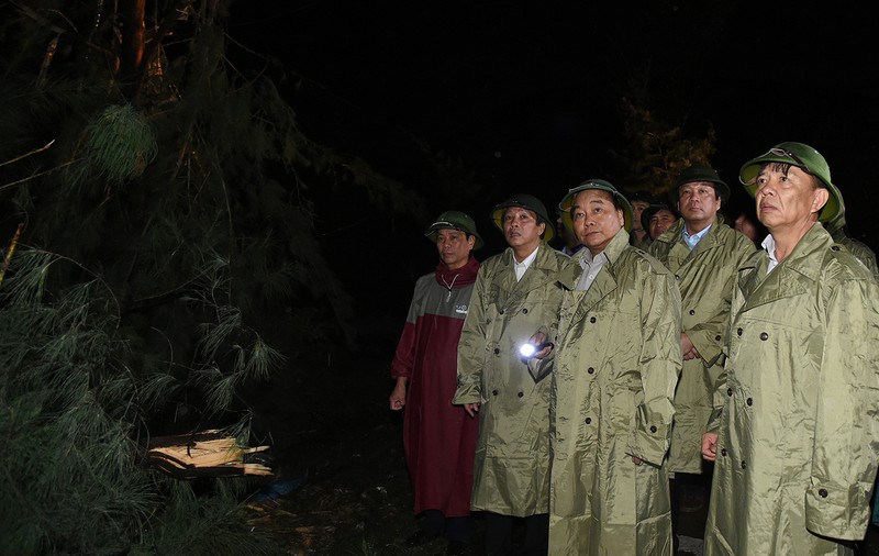 Thị sát tình hình thiệt hại tại thành phố Đồng Hới, hiện đang bị mất điện diện rộng, Thủ tướng yêu cầu việc trước mắt là khắc phục hệ thống điện để cấp điện cho người dân, “chứ để cả thành phố tối, mất điện, rất nguy hiểm”.