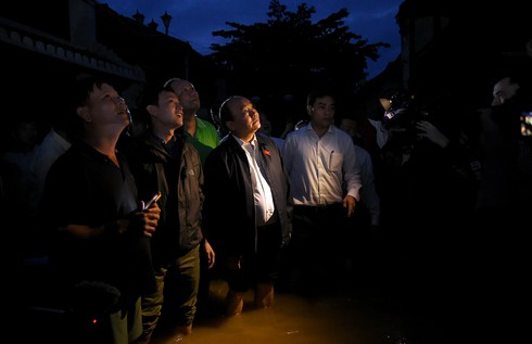 Chia sẻ với những thiệt hại, mất mát của người dân tỉnh Quảng Nam do bão số 12 gây ra khi hiện nay, mực nước nhiều con phố vẫn ở mức báo động 3, Thủ tướng ghi nhận nỗ lực của tỉnh Quảng Nam, TP Hội An, nhất là công tác cứu hộ, cứu nạn, bảo đảm lương thực, nước uống cho người dân.