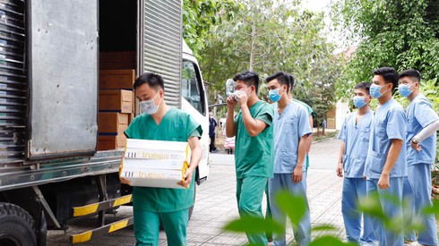 TH tặng sữa để góp phần tăng cường sức khỏe cho các bác sĩ chống dịch Covid-19 tại Bệnh viện Củ Chi. |