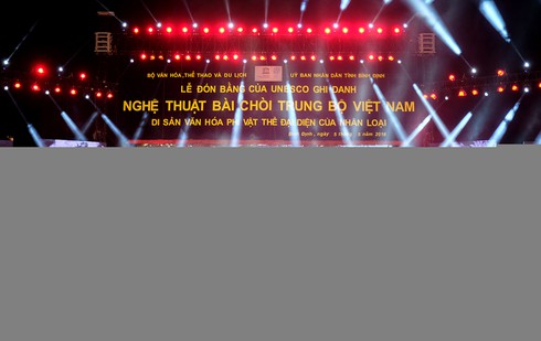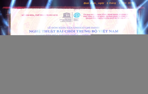 Tối 5/5, Lễ đón bằng UNESCO ghi danh nghệ thuật bài chòi Trung Bộ Việt Nam là di sản văn hóa phi vật thể của nhân loại đã diễn ra tại TP. Quy Nhơn, tỉnh Bình Định.
