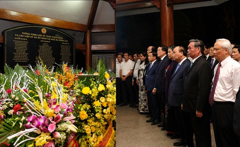 Thủ tướng và lãnh đạo Đảng, Nhà nước dâng hương tưởng niệm các liệt sĩ đã hy sinh tại Ngã ba Đồng Lộc. Ảnh: VGP/Quang Hiếu |