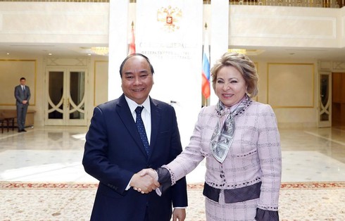 Thủ tướng Nguyễn Xuân Phúc đánh giá cao sự hỗ trợ hiệu quả từ phía Hội đồng Liên bang Quốc hội Nga và cá nhân Bà Chủ tịch đối với hợp tác giữa các địa phương hai nước thời gian qua, thông báo các địa phương Việt Nam và Nga đã ký kết nhiều thỏa thuận hợp tác trong khuôn khổ chuyến thăm lần này, như giữa Bình Thuận và Kaluga, mong Hội đồng Liên bang Nga tiếp tục làm cầu nối giúp các tỉnh, thành phố Việt Nam kết nối, thiết lập quan hệ hợp tác với các địa phương Nga, triển khai hợp tác với kết quả cụ thể, thiết thực trên cơ sở các thỏa thuận đã ký kết.