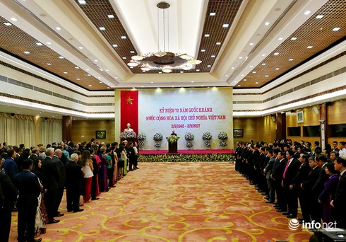 Tối ngày 31/8, nhân dịp kỷ niệm 72 năm Quốc khánh nước Cộng hoà xã hội chủ nghĩa Việt Nam (2/9/1945 - 2/9/2017), thay mặt Đảng, Nhà nước và nhân dân Việt Nam, Thủ tướng Chính phủ Nguyễn Xuân Phúc đã tổ chức tiệc chiêu đãi trọng thể tiếp đón Ngoại giao đoàn và các Tổ chức Quốc tế tại Việt Nam.