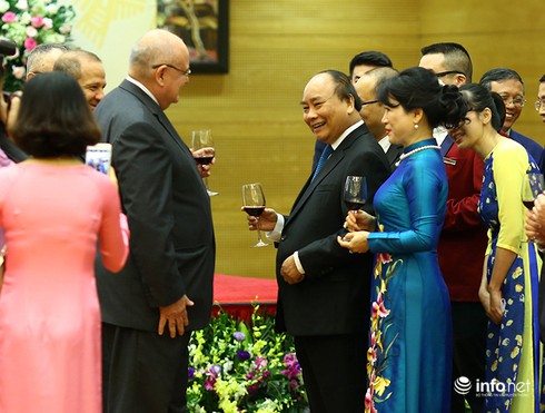 Tôi hy vọng quý vị và gia đình sẽ tiếp tục có khoảng thời gian sống, làm việc đáng nhớ và có những kỷ niệm đẹp về đất nước, con người Việt Nam. Đảng, Nhà nước Việt Nam tin tưởng rằng, một nước Việt Nam hòa bình, ổn định, thịnh vượng và tiếp tục Đổi mới mạnh mẽ sẽ luôn là người bạn chân thành, đối tác hợp tác tích cực, tin cậy, trách nhiệm của cộng đồng quốc tế" - Thủ tướng Chính phủ Nguyễn Xuân Phúc phát biểu.