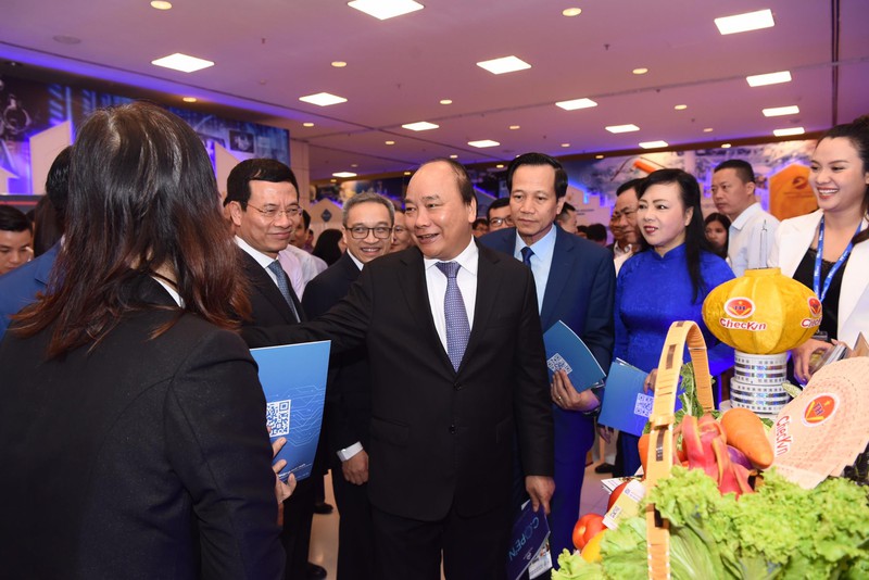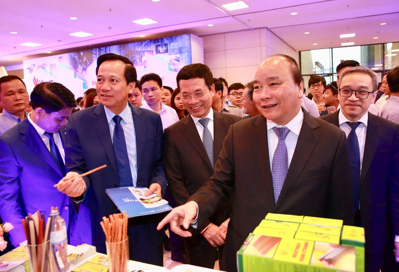 Thủ tướng Nguyễn Xuân Phúc thăm các gian hàng tại Diễn đàn quốc gia phát triển DN công nghệ
