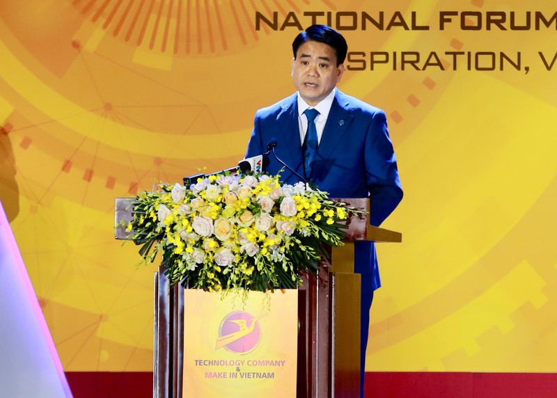 Chủ tịch UBND TP Hà Nội Nguyễn Đức Chung là đại biểu đầu tiên có bài tham luận tại diễn đàn. |